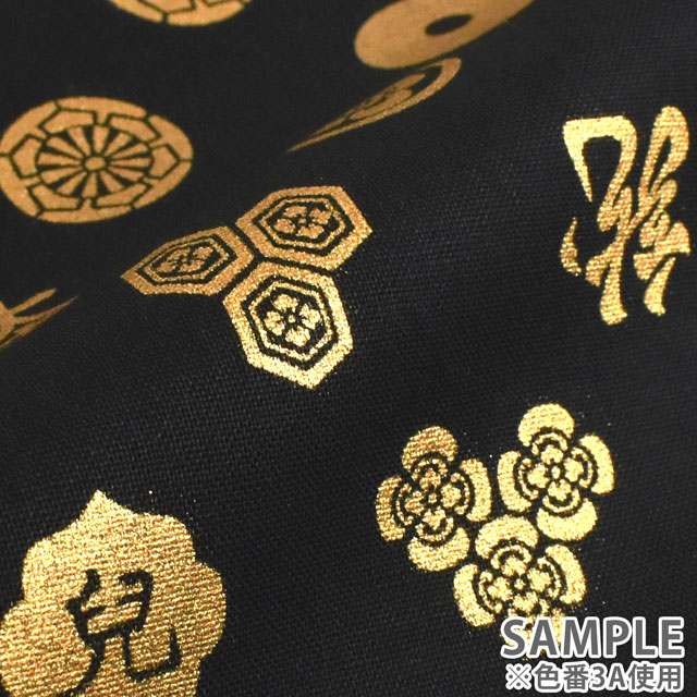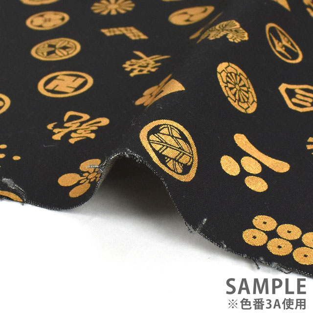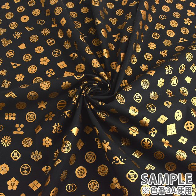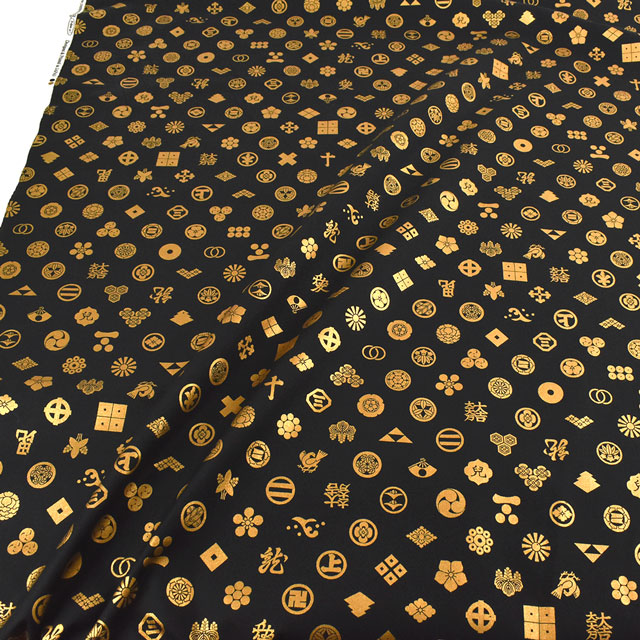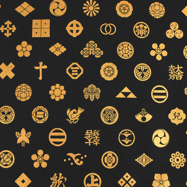 様々な家紋がプリントされた生地です。