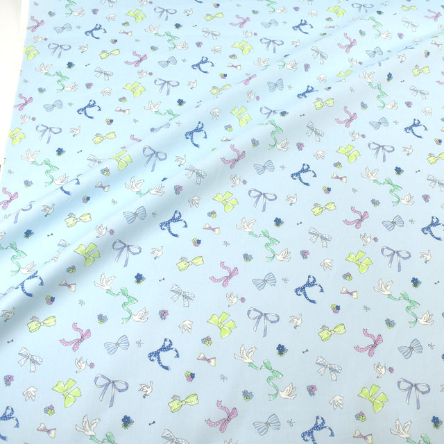 生地 キッズランド GIRLS リボンと小鳥/シーチング(SP2400) 2D.ブルー 09Ae99_