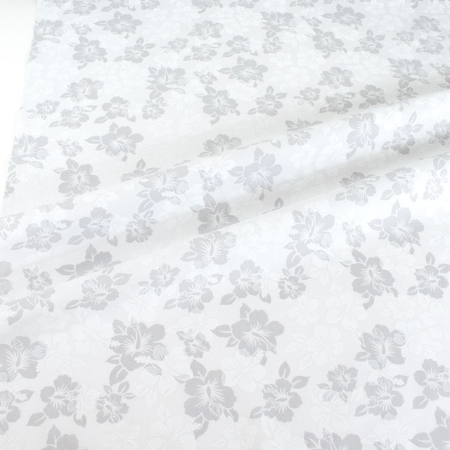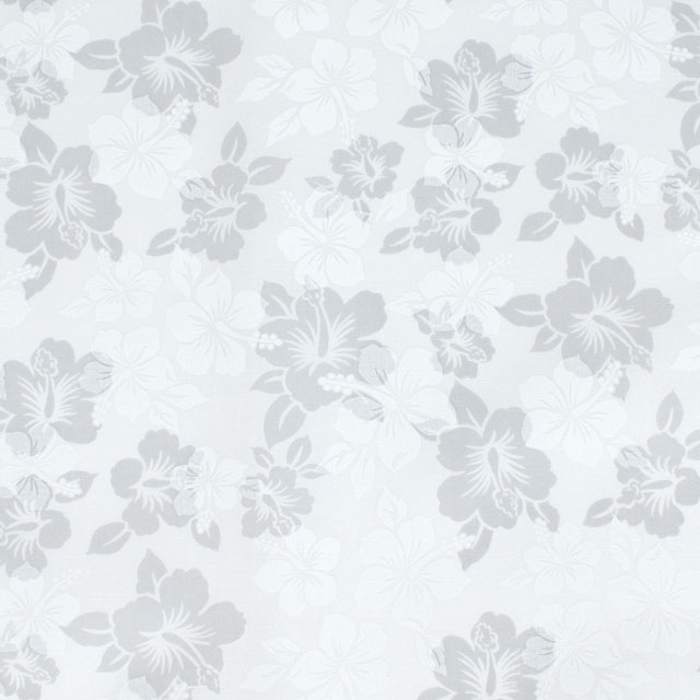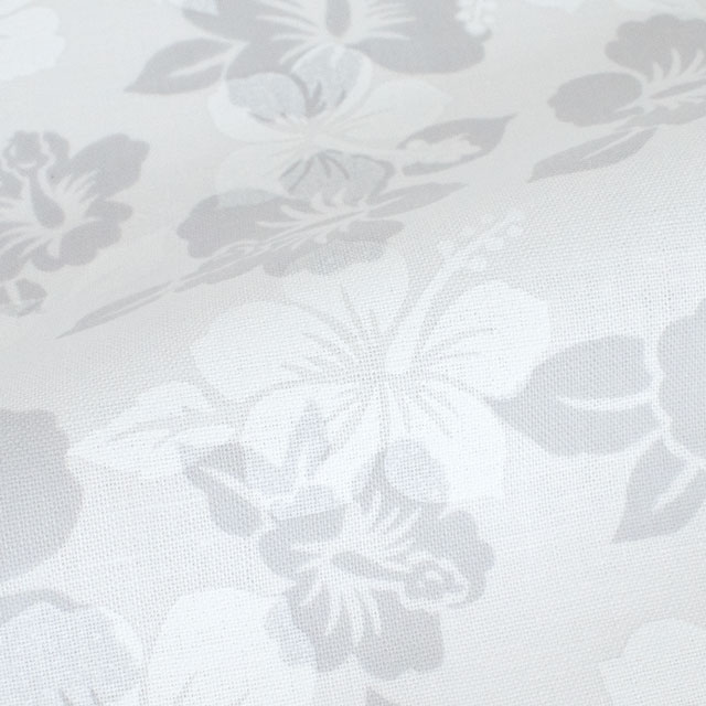 白の顔料でプリントしたハイビスカスが重なり合っているデザインです。