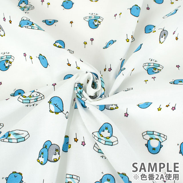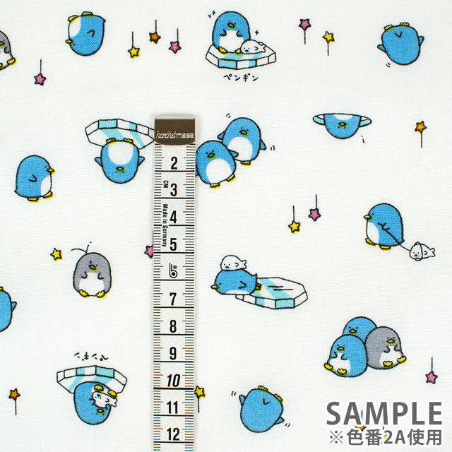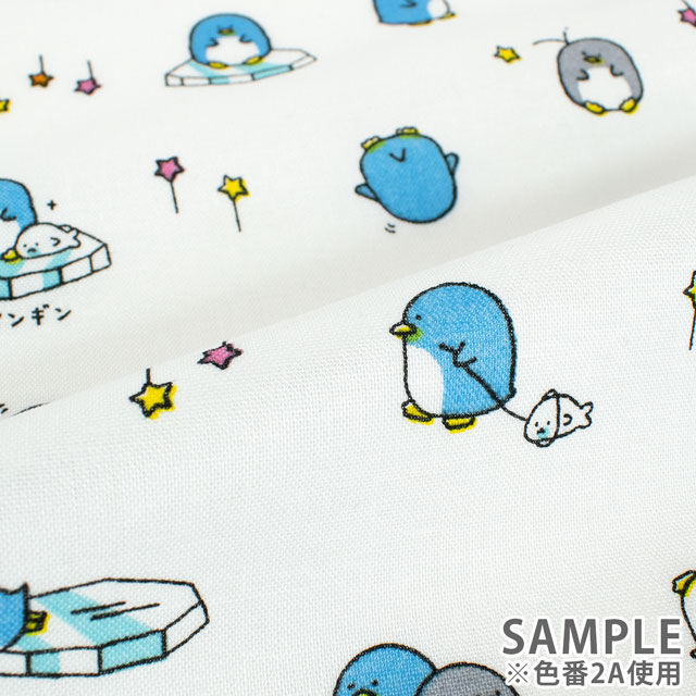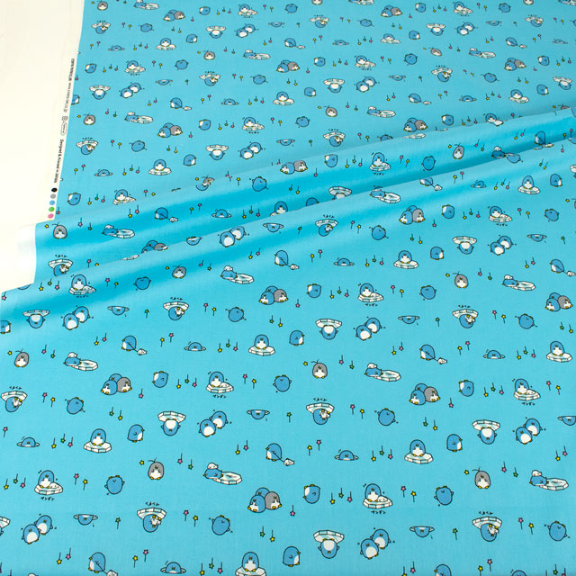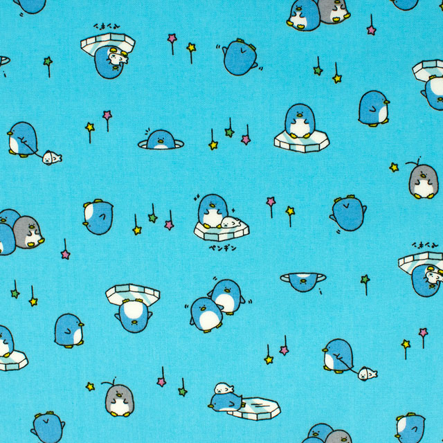 ゆる~いペンギンのプリントが可愛らしいシーチングプリント生地です。