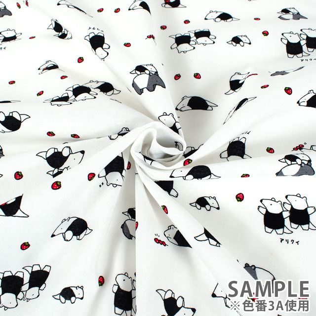 ゆる~いアリクイのプリントが可愛らしいシーチングプリント生地です。