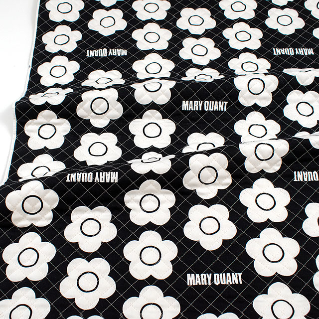 マリークヮントのブランドのアイコンであるデイジーを一面にちりばめたシンプルで大人可愛いデザインのキルト生地です。
