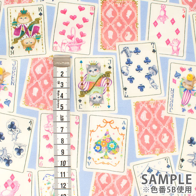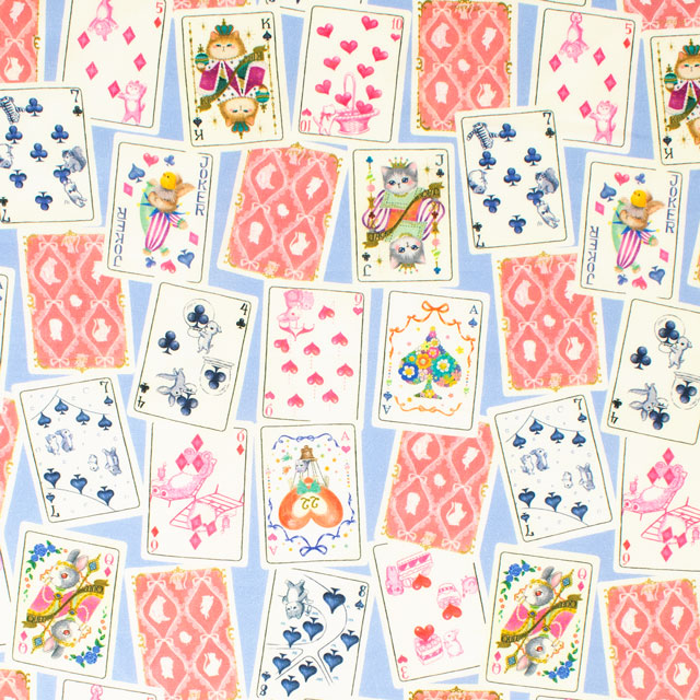 トランプだけが浮いて目立ってしまわないよう、配色を含めて背景に馴染むように工夫し、印象以上に使いやすい柄になりました。