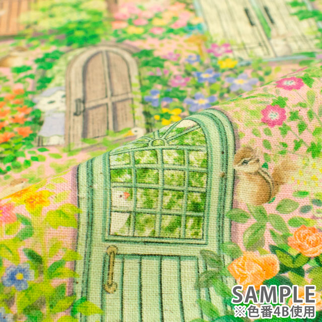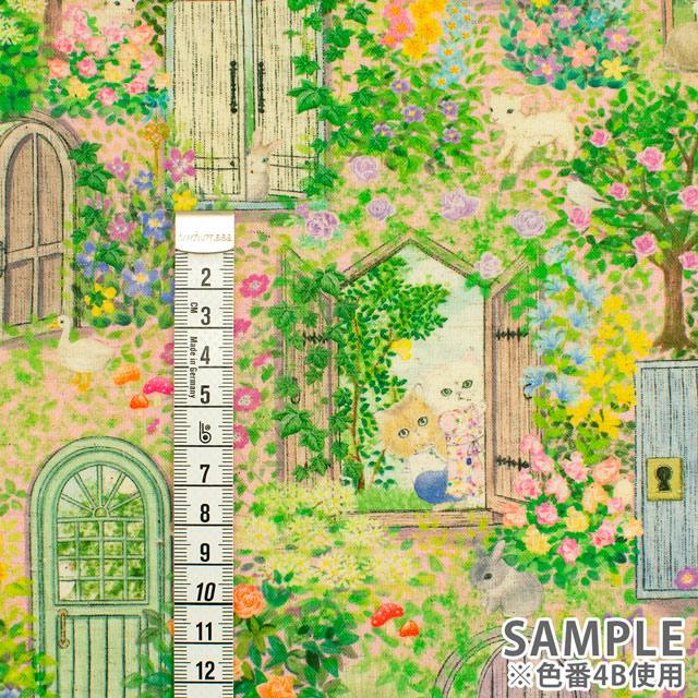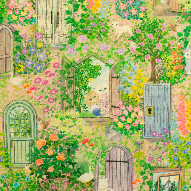 カラフルな花と緑に彩られた英国風の庭園と、扉の向こうに広がる外の世界を行き来するどうぶつたちを描きました。