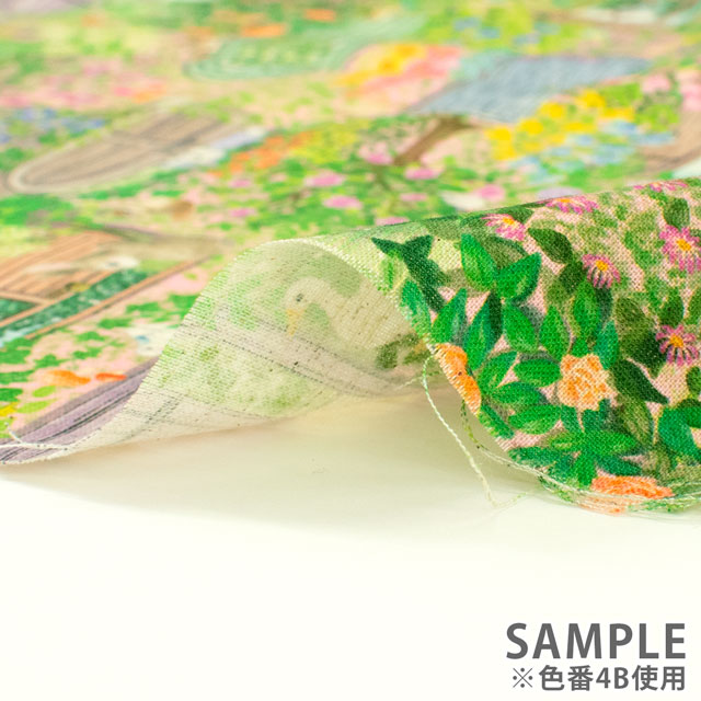 薄手で通気性の良い綿麻混紡のシーチング生地にプリントされています。