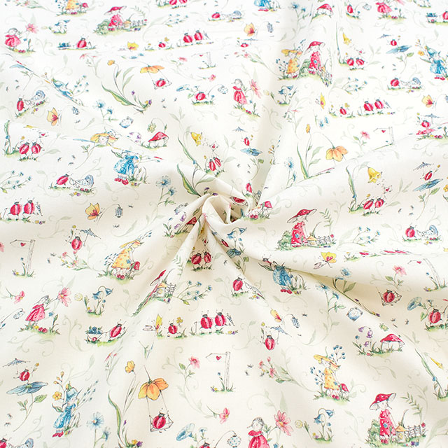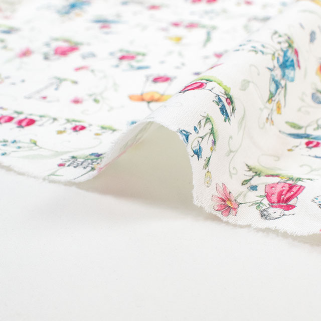 使いやすい普通地の平織コットン生地なので、ブラウスやワンピース等のお洋服はもちろん、バッグやポーチ、キッチンクロスやポットカバー、コースターなどのキッチン小物、クッションカバーなどのインテリアクロスなど幅広くご利用いただけます。