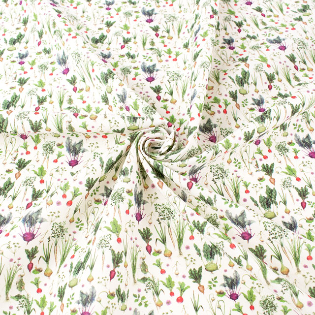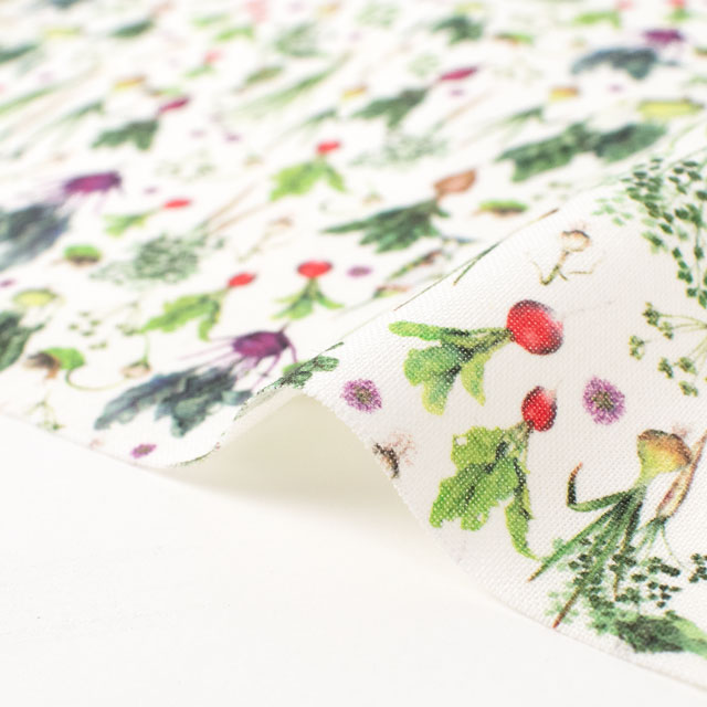 使いやすい普通地の平織コットン生地なので、ブラウスやワンピース等のお洋服はもちろん、バッグやポーチ、キッチンクロスやポットカバー、コースターなどのキッチン小物、クッションカバーなどのインテリアクロスなど幅広くご利用いただけます。