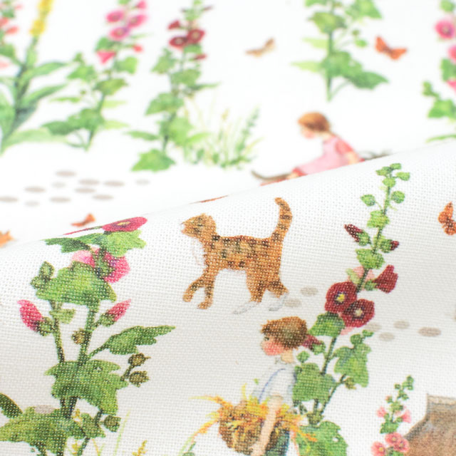 使いやすい普通地の平織コットン生地なので、ブラウスやワンピース等のお洋服はもちろん、バッグやポーチ、キッチンクロスやポットカバー、コースターなどのキッチン小物、クッションカバーなどのインテリアクロスなど幅広くご利用いただけます。