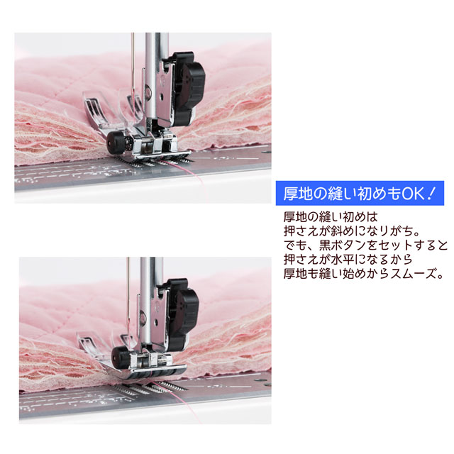 水平送りなので、厚地も薄地もすいすい縫えます。