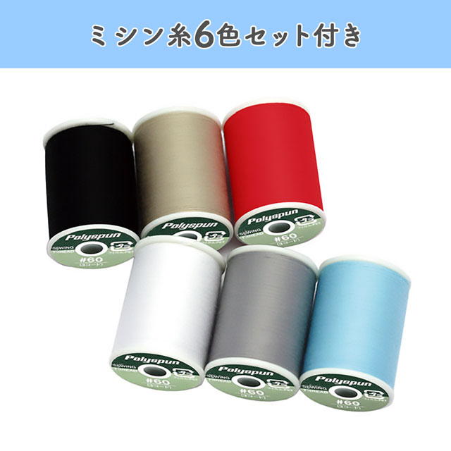 ●ミシン付属品:基本押え、たち目かがり押え、ファスナー押え、サテン押え、まつり縫い押え、ボタンホール押え、シームリッパー、補助糸立て棒、ボビン4個、糸こま受け台、フェルト、ミシンブラシ、針セット、ドライバー、糸こま押え(大・小)、取扱説明書、電源コード、説明DVD、ハードケース