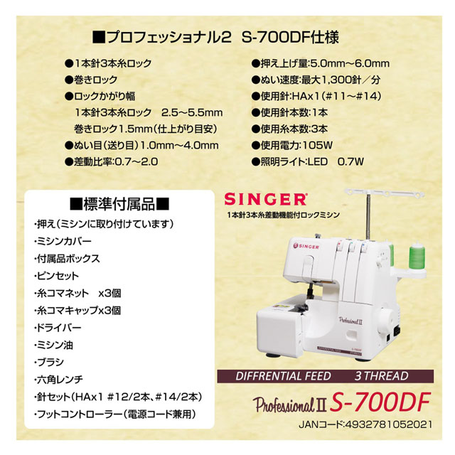 ・1本針3本糸差動機能付きロックミシン シンガーS-700DF