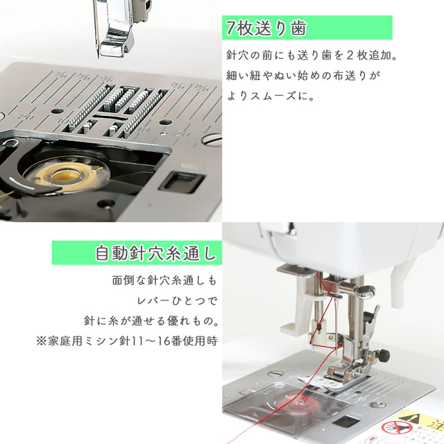 ・7枚送り歯で縫い始めからスムーズに縫えます