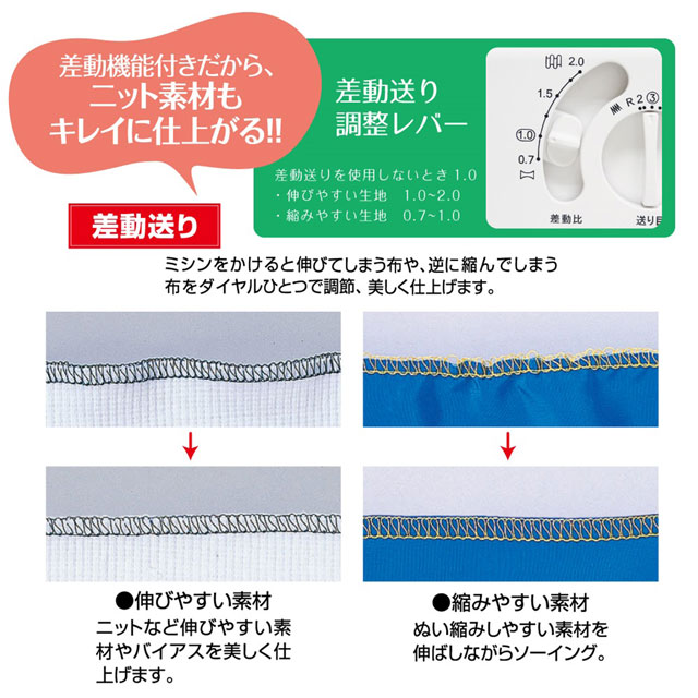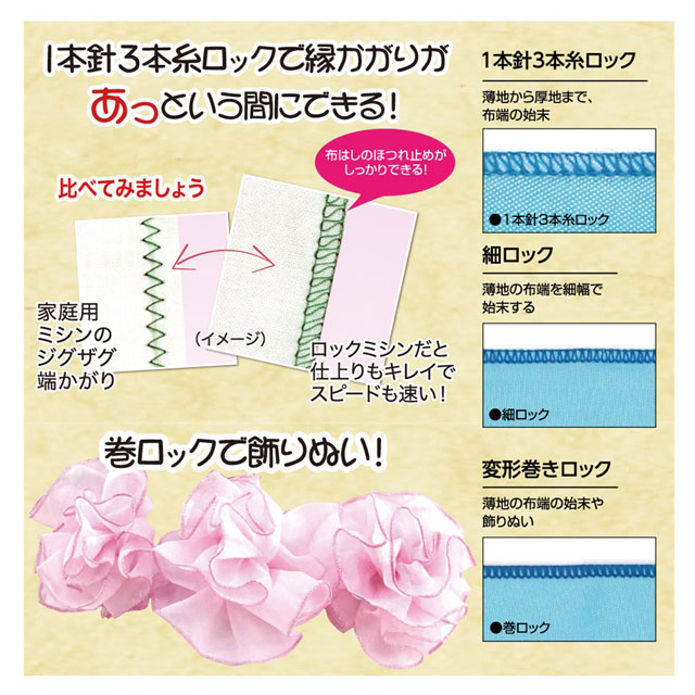 ・1本針3本糸差動機能付きロックミシン