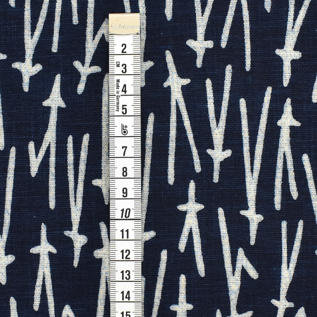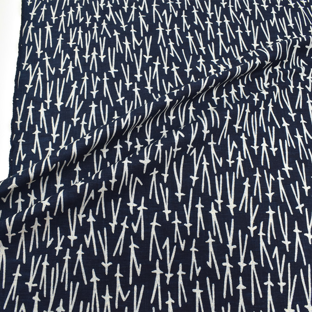 麻に似たハリ感のある中厚の和柄プリントのコットン生地です。