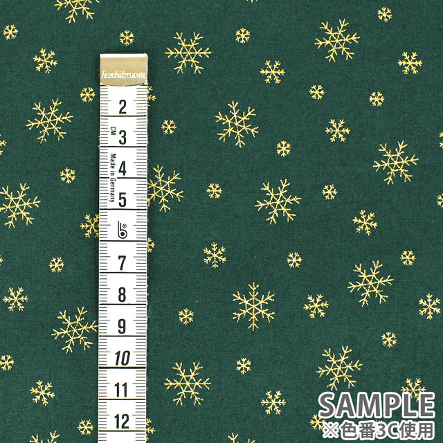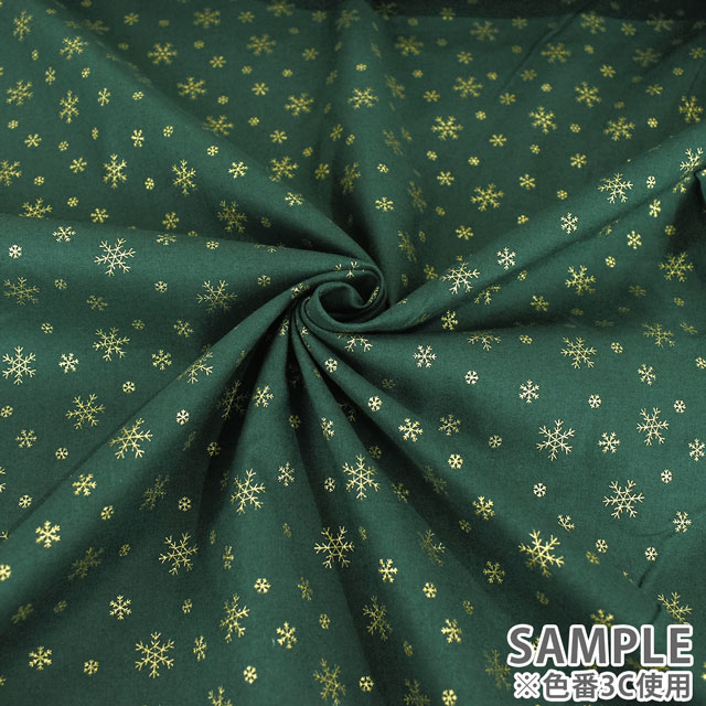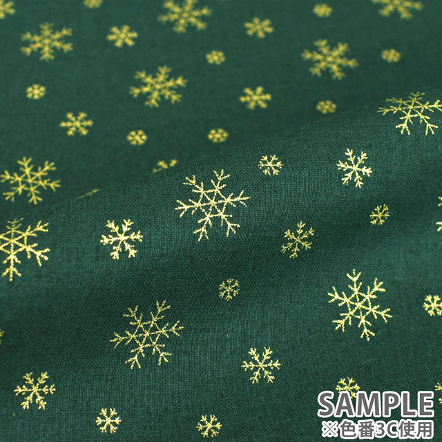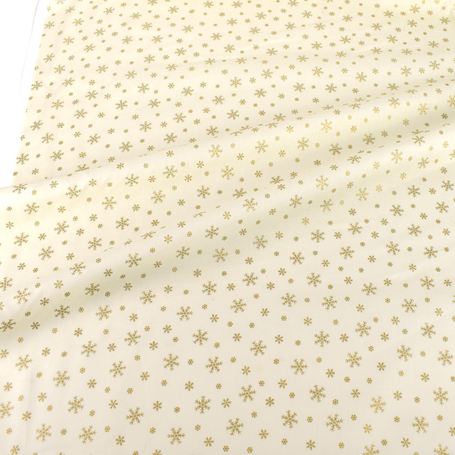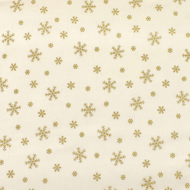 雪の結晶がゴールドの箔でプリントされた、クリスマスにぴったりのスケア生地です。