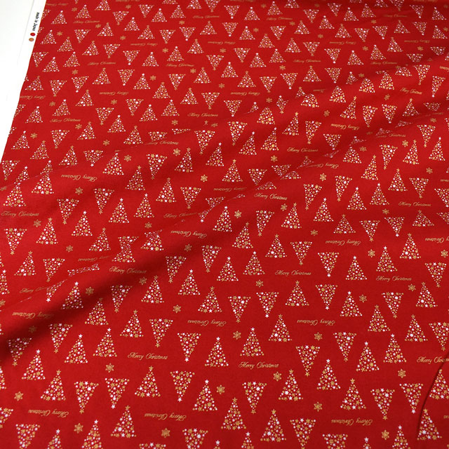 星やドットでツリーのシルエットが描かれた、大人っぽいクリスマスプリント生地です。