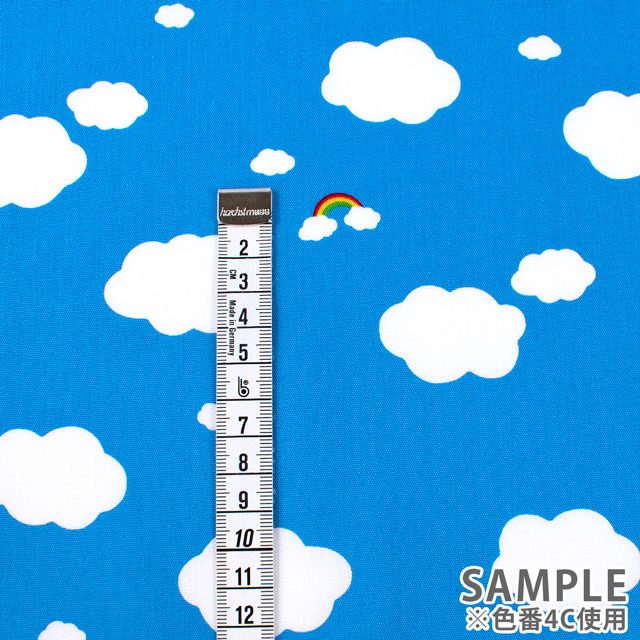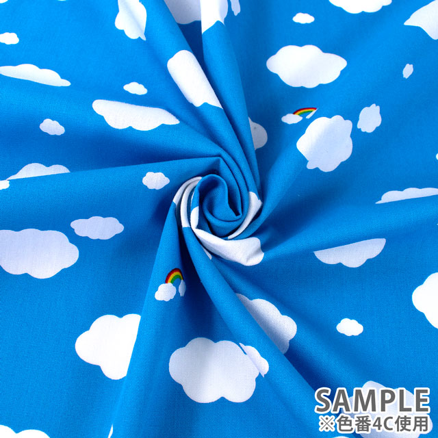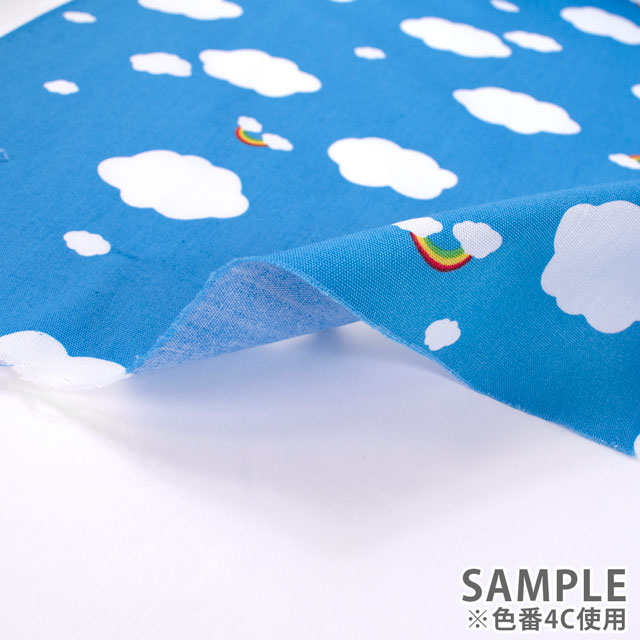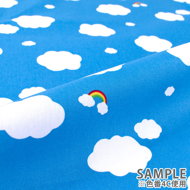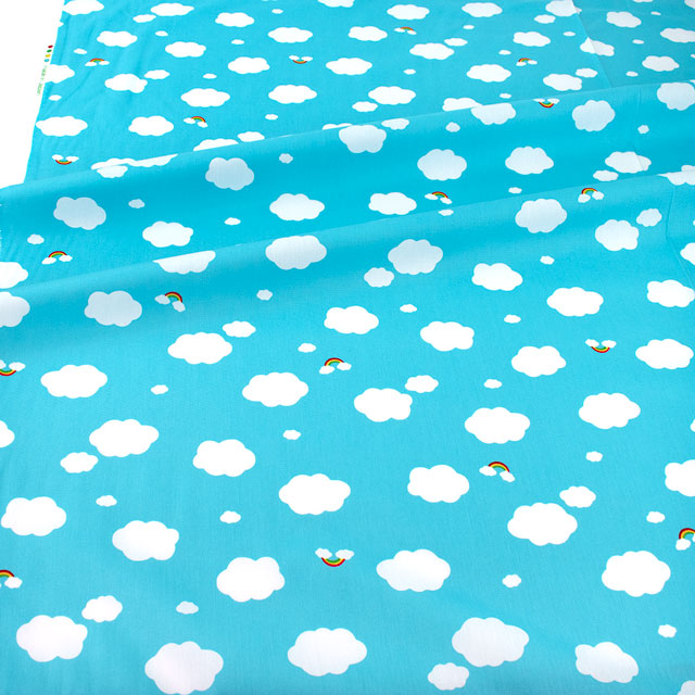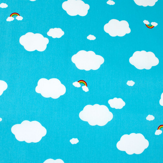 空に浮かぶ雲と虹のかわいらしいプリント生地です。