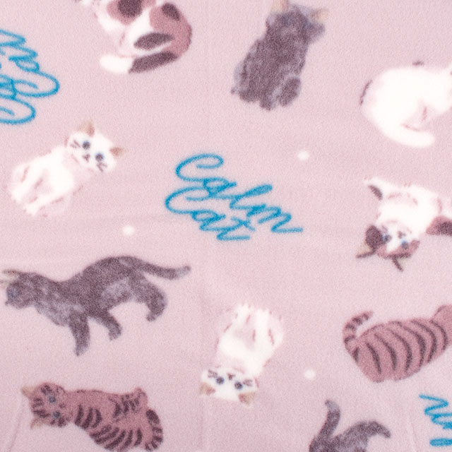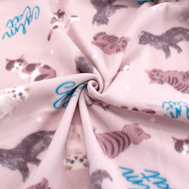 生地 フリースプリント ねこ 約140cm幅×150cmカット(75600-1) 3.ライトピンク 14yy88_