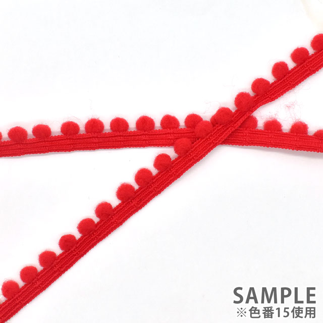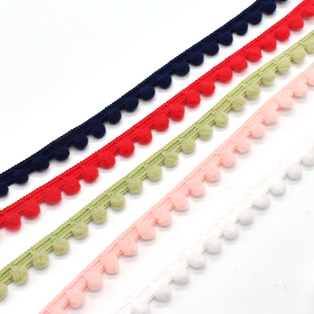 小さくてふわふわのポンポンが並んだ可愛いボンボンブレード(ポンポンテープ)です。