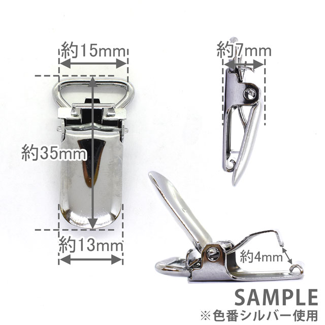 ズボンやスカートを吊り下げるためのサスペンダー金具です。