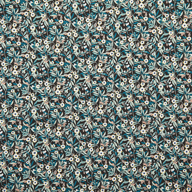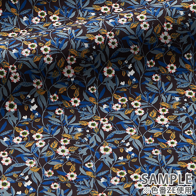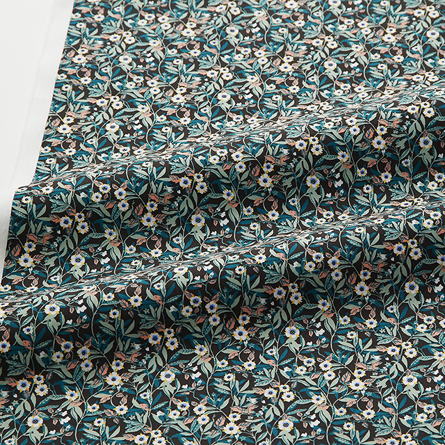 ウィリアム・モリスのブロック・プリントされた壁紙「ウィロー」と「スイート・ブライア」からインスピレーションを得て、「パビリオン」に描かれている小さな花を一面に繰り返しレイアウトし、クラシックなリバティの小花柄を再現しました。