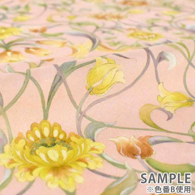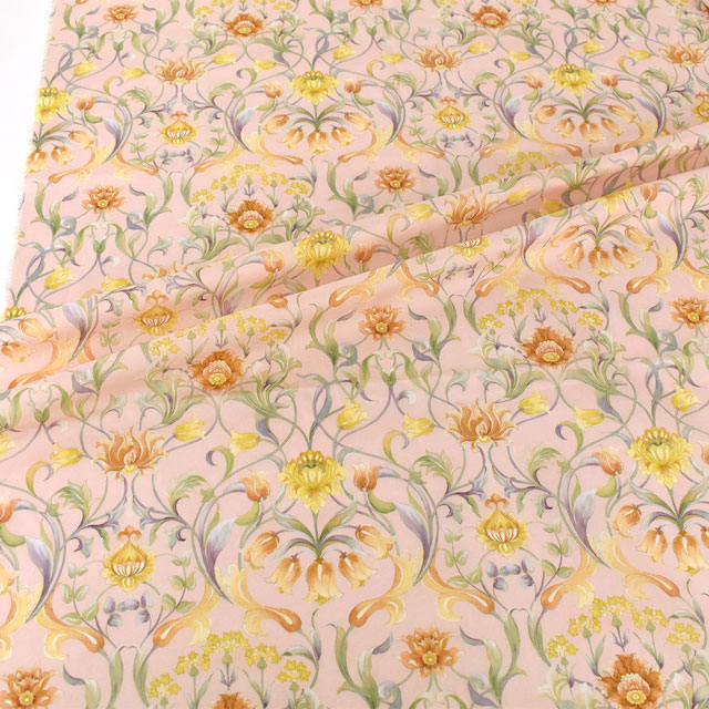 リバティのアーカイブから発見されたラージスケールの作品をベースに、雄大な渦巻く葉と引き続く装飾的なディテールによって描かれた輝かしいアールヌーヴォー様式のパターンに解釈した「コープリー・ホール」。