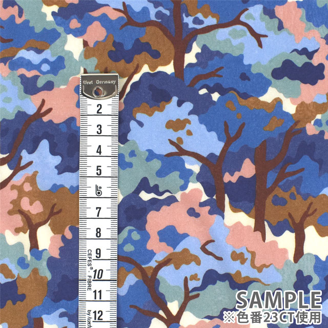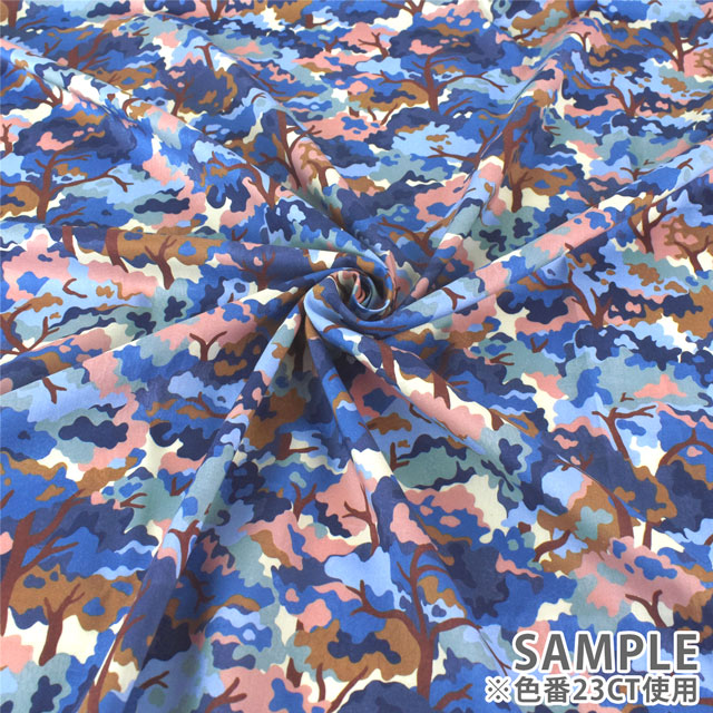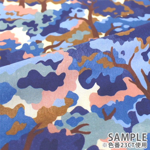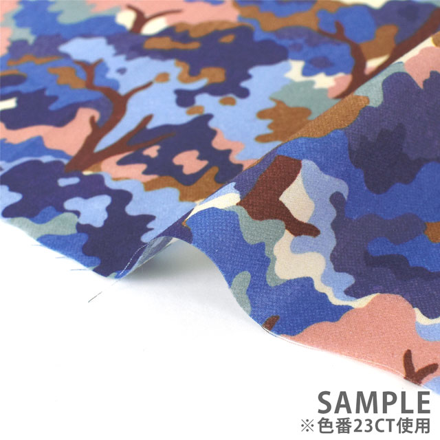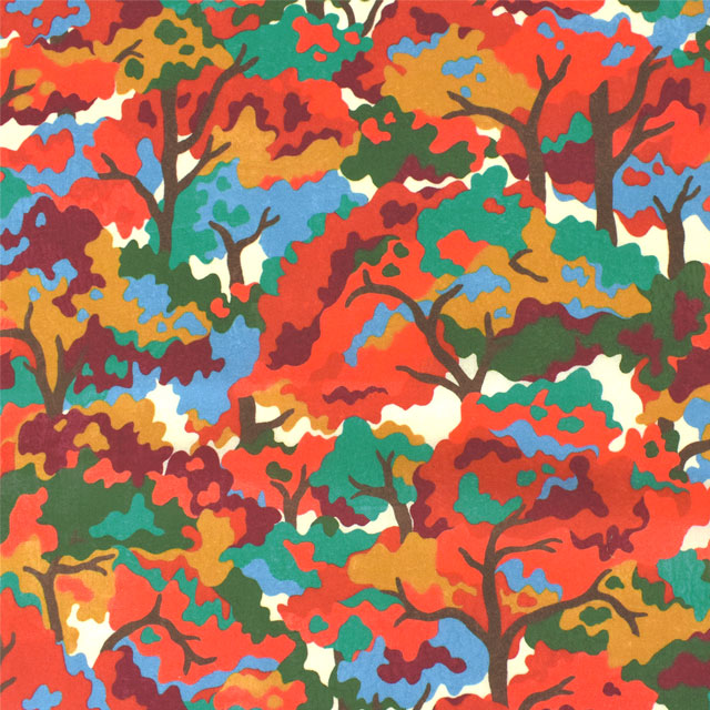 1920年代のリバティアーカイブの小さな紙片から着想を得て、フラットなガッシュでブロックプリントのようなテクチャーで描いた迷彩柄の木のデザインです。