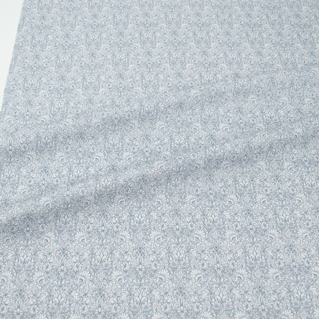 シンプルながらも複雑なモノクロデザインは、1880年代のリバティ・アーカイブの生地見本をベースにしたイラスト調の繊細なボタニカルデザインです。