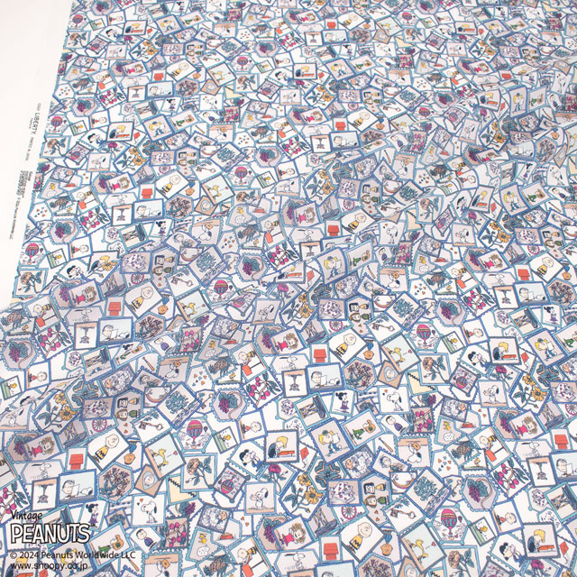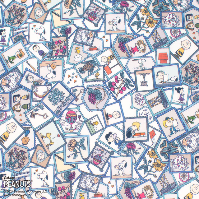 楽しい切手のコレクションの遊び心溢れるこのデザインは、手描きのリバティ・ファブリックスパターンとピーナッツのなかまたちがシームレスに融合し、物語の魅力を呼び起こします。
