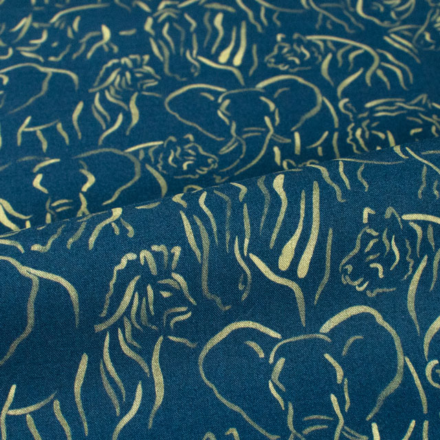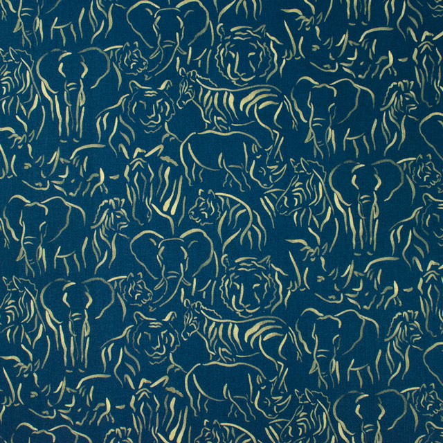 動物に関連する名を持つ花や葉に含まれる動物を単純化し様式化し、インクでゆるやかな筆跡で描かれています。タイガー・リリー、ライノ・ハイド・リーフ、ゴールデン・ゼブラ・リーフ、エレファント・イヤーズ・リーフなどを表現。