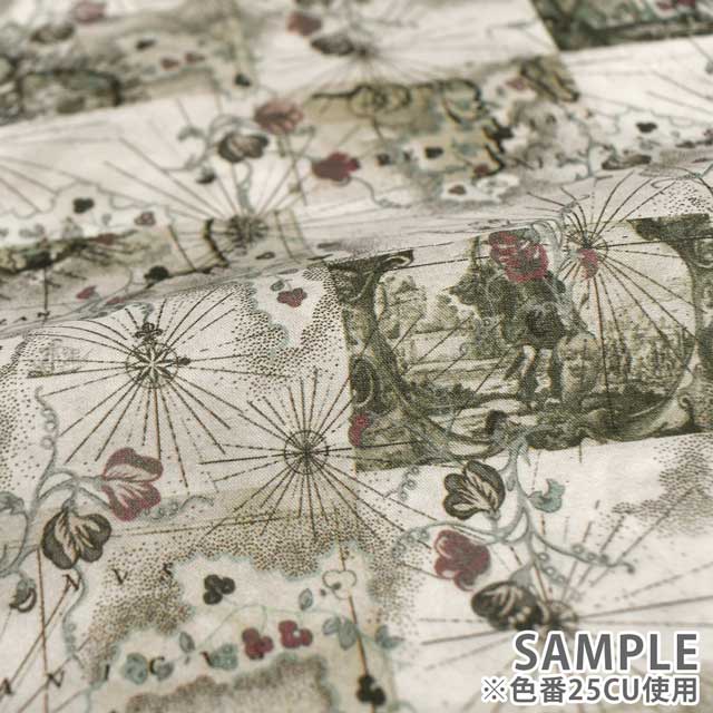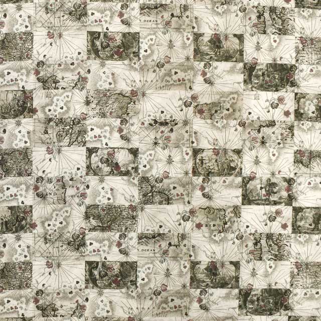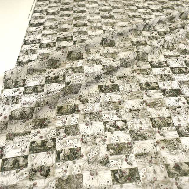 リバティのアーカイブから集めたデザインを融合して作られた「ハネムーン・マップ」は、花柄やカンバセーショナルな要素、幾何学的なパターンが組み合わさったデザインです。