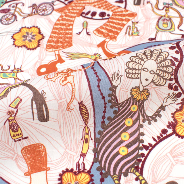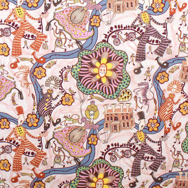 アーティストのグレイソン・ペリー卿の65歳の誕生日を記念し、ロンドンのウォレス・コレクションにて開催される展覧会「誇大妄想」のために考案されたデザインから着想を得てリバティ150周年コレクションのためにグレイソン・ペリーによって制作されました。
