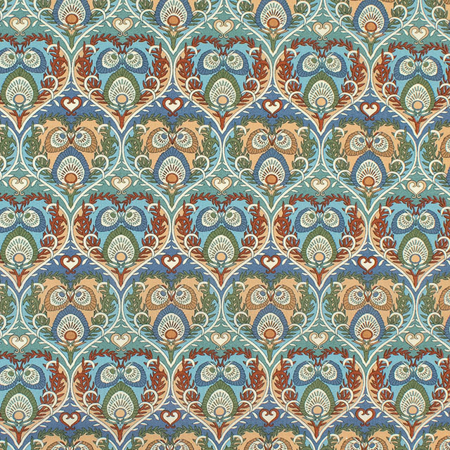 リバティの象徴的な1887年のデザイン「ヘラ」から着想を得た「プルーム・ハーツ」は、スタイライズされたアール・ヌーヴォーのモチーフと、孔雀の羽の持つ変わらぬ美しさを融合させています。