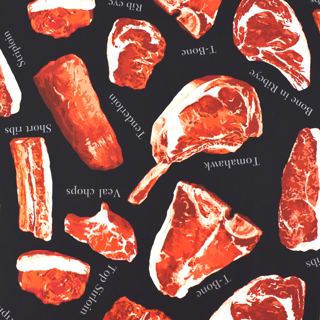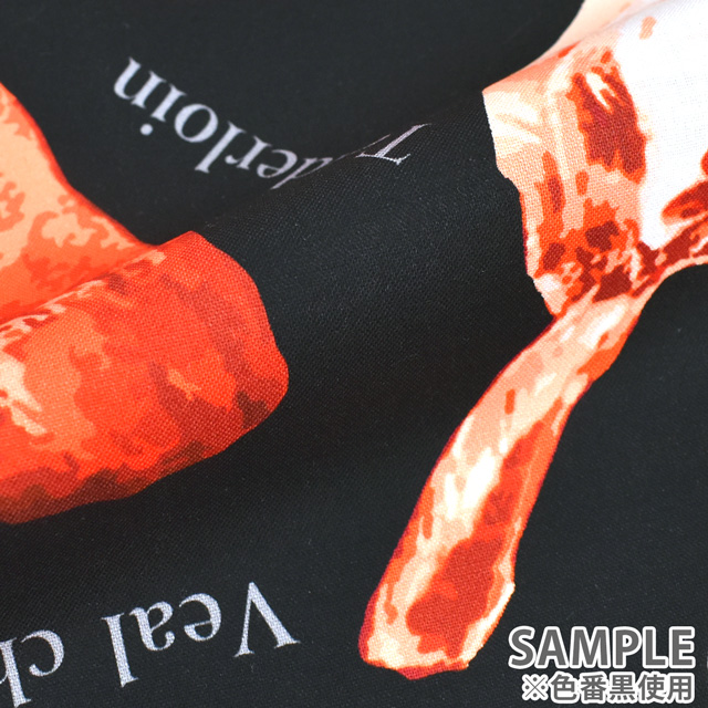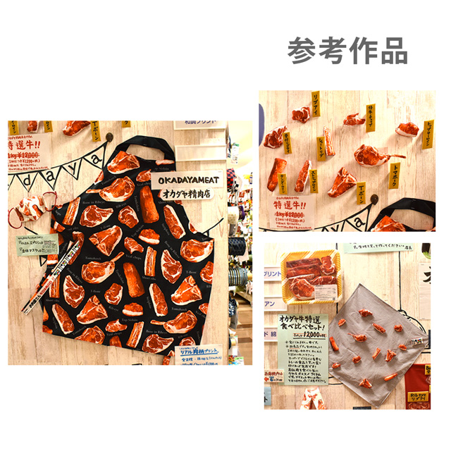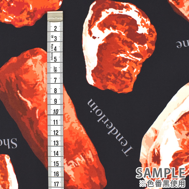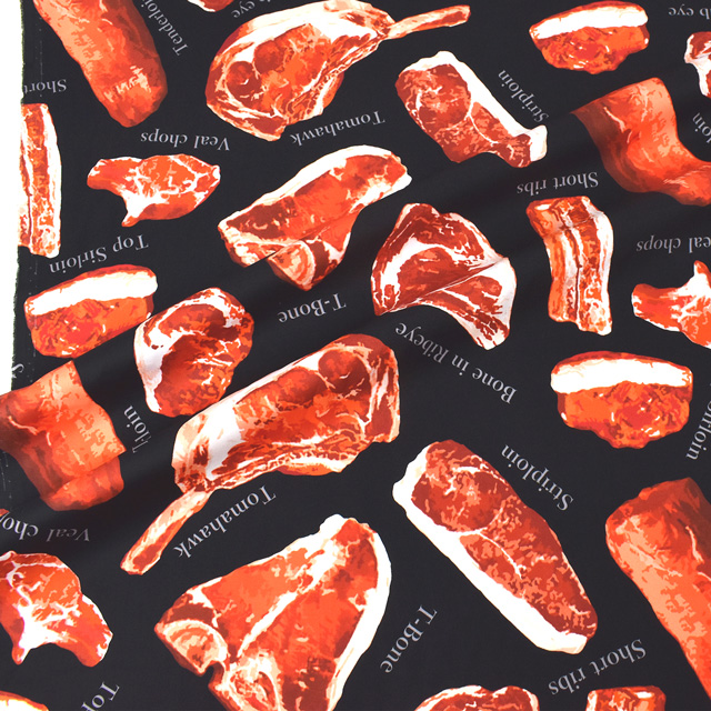 使いやすい薄手のシャーティング生地に、デジタルプリントでリアルなお肉がプリントされた生地です。