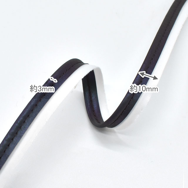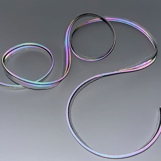 フラッシュライトをあてるとオーロラのように光って見える生地「オーロラリフレクター」を使用したパイピングテープです。
