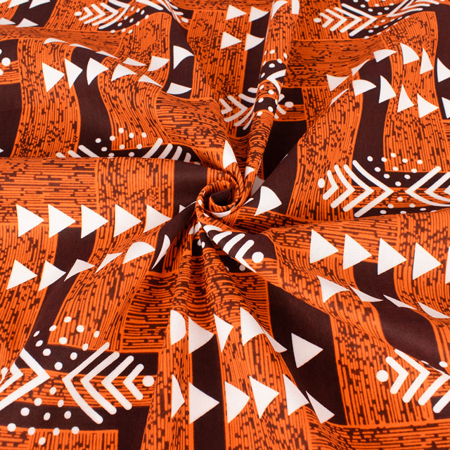 生地 アフリカ布 キテンゲ 24SS 14.ブラック×オレンジ 09Ae99_