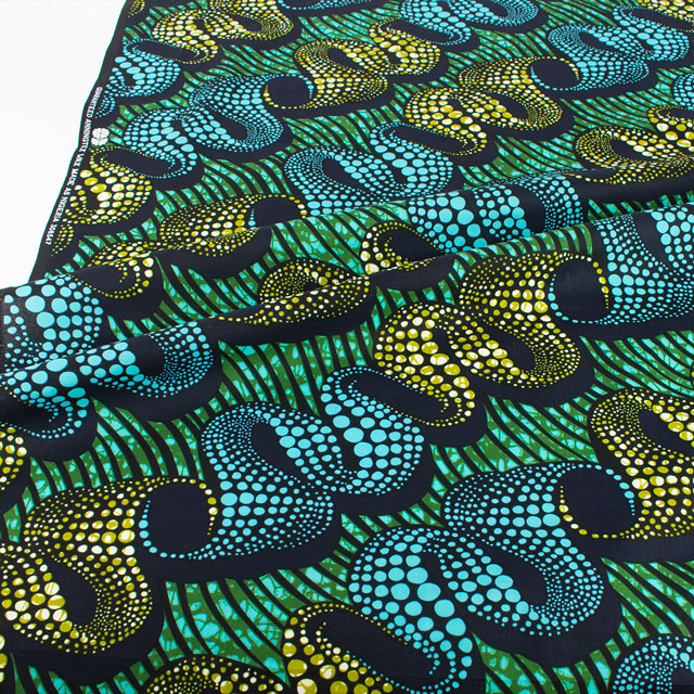生地 アフリカ布 キテンゲ 24SS 18.グリーン×ブルー 09Ae99_
