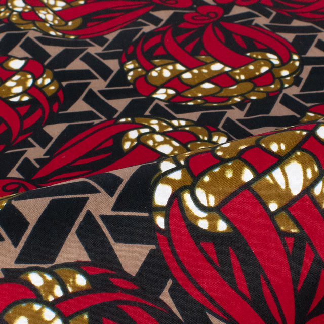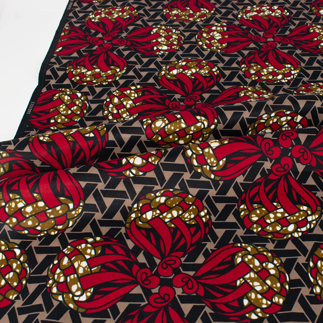 生地 アフリカ布 キテンゲ 24SS 23.ブラック×レッド 09Ae99_