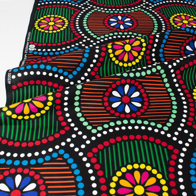 インドネシアのバティックをルーツにもつ西アフリカの伝統的な民族布のことを言い、西アフリカでは「バーニュ」とも呼ばれています。