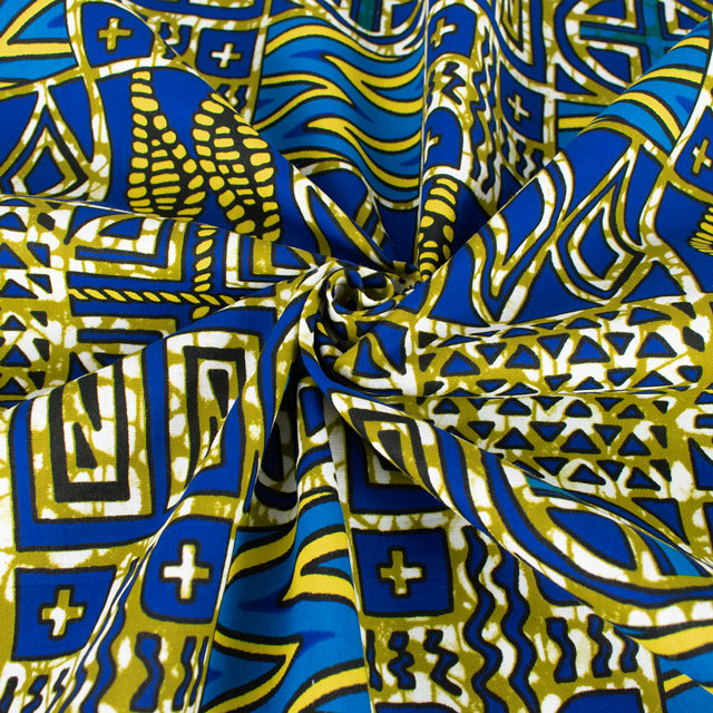 生地 アフリカ布 キテンゲ 24SS 33.ブルー×イエロー 09Ae99_