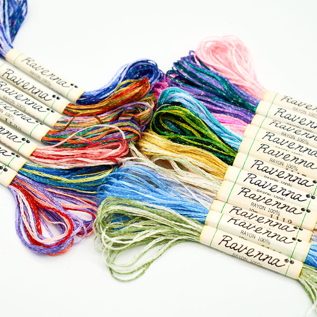 ツヤのあるレーヨンの糸にラメの入った上品なグラデーションの刺しゅう糸です。