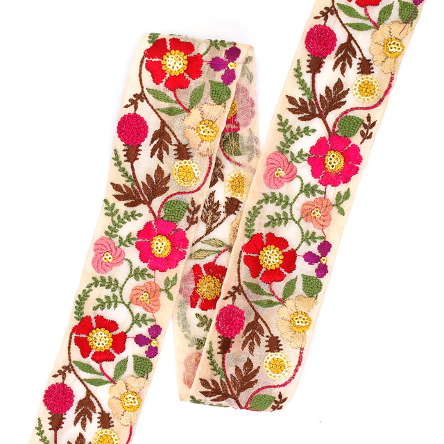 オーガンジー生地に野に咲く花々が刺繍されたリボンです。