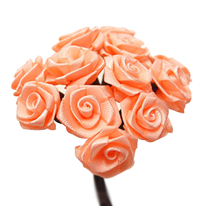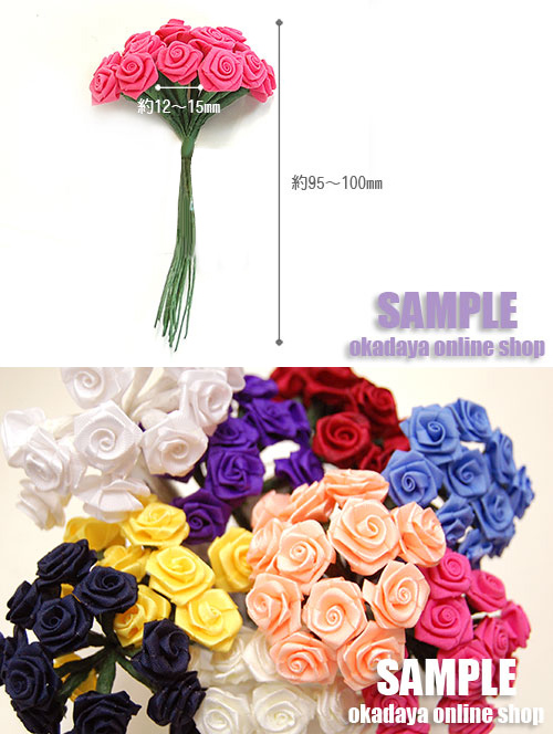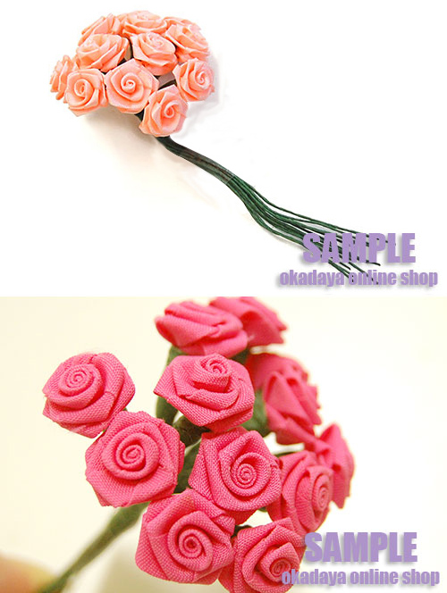 細幅リボンで作られた、可愛らしい巻きバラの造花です。