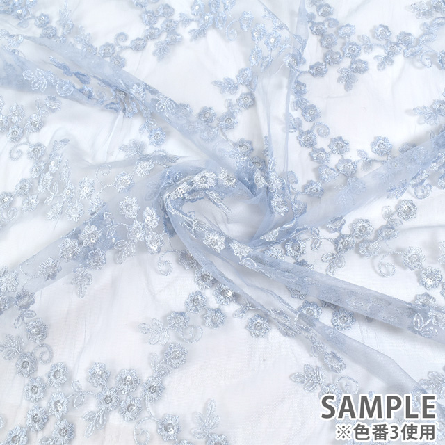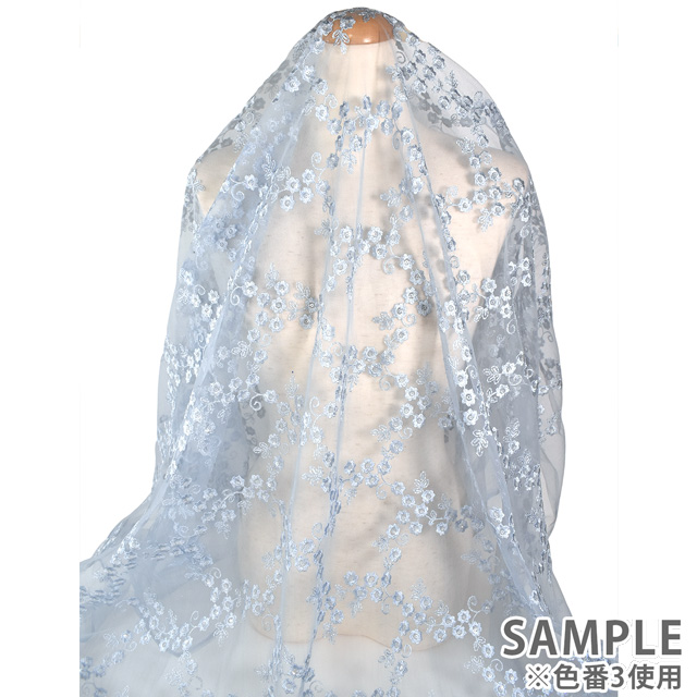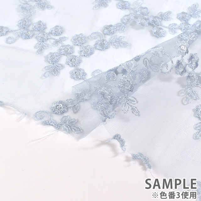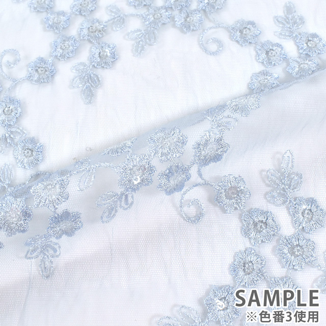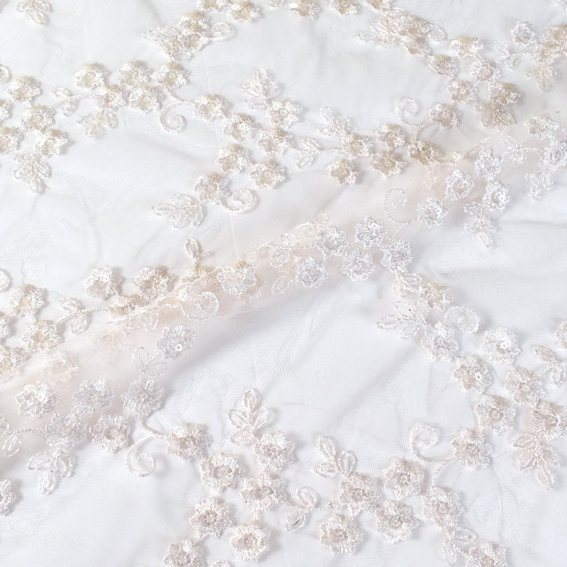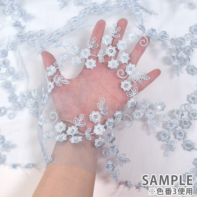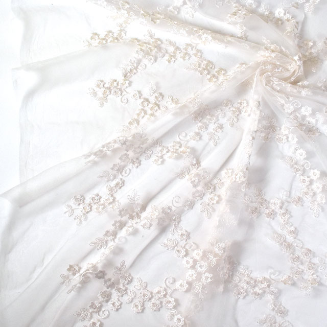 柔らかいチュール生地に、お花柄の刺繍が施されたレース生地です。
