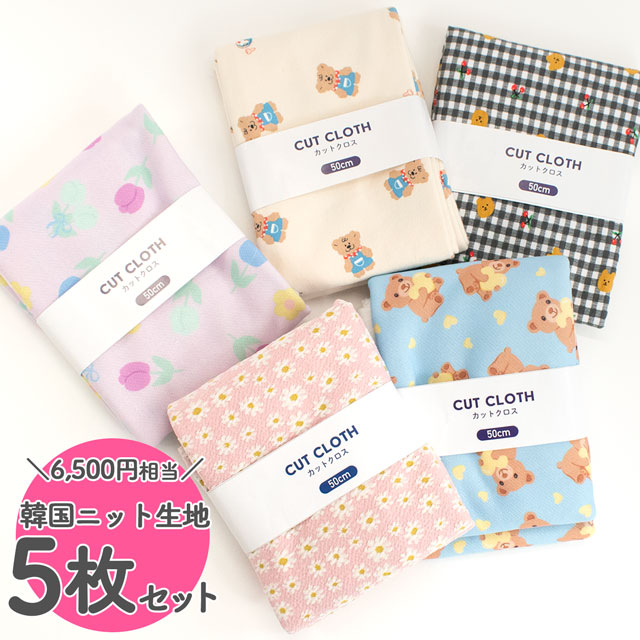 韓国発!ニットプリント生地50cmカットクロスが5点セットになった福袋です。