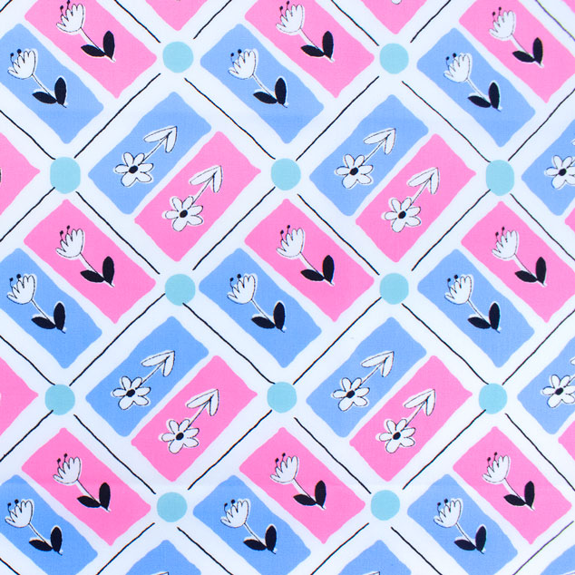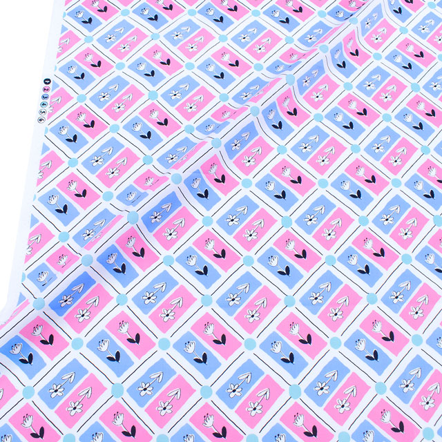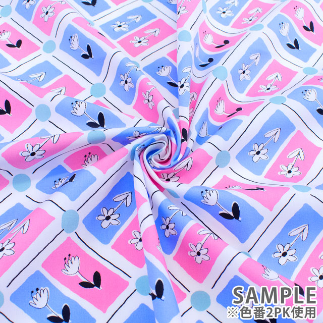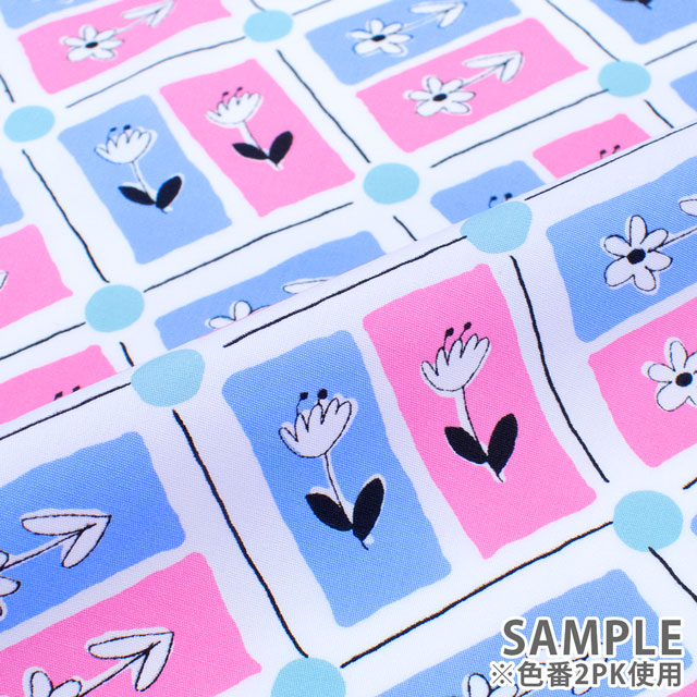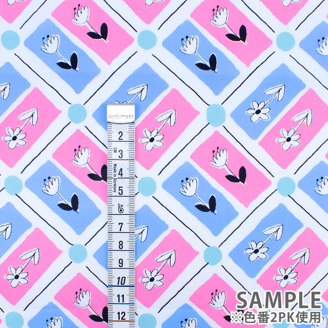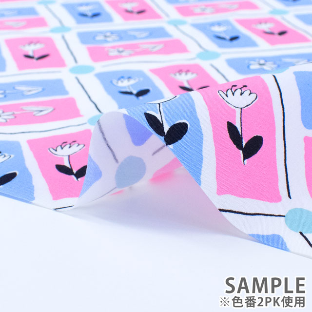 生地 FiN tex-フィンテックス- タイル花柄 約140cm幅×50cmカット(OKF-028) 2PK.ピンク/ブルー 09Ae06_