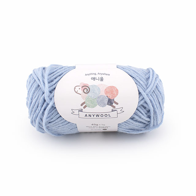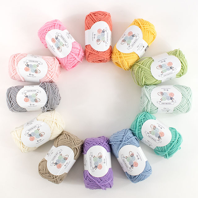 韓国の毛糸ショップ、Yarn-aのAnywoolは、柔らかくて軽いウールとアクリルの混紡糸。