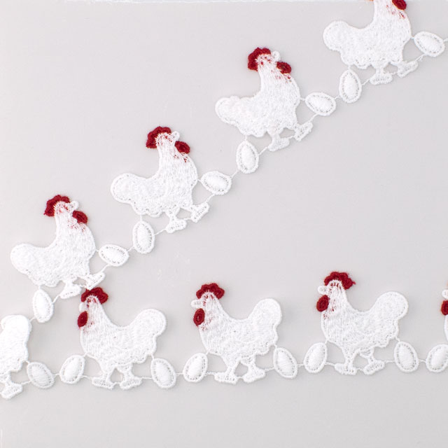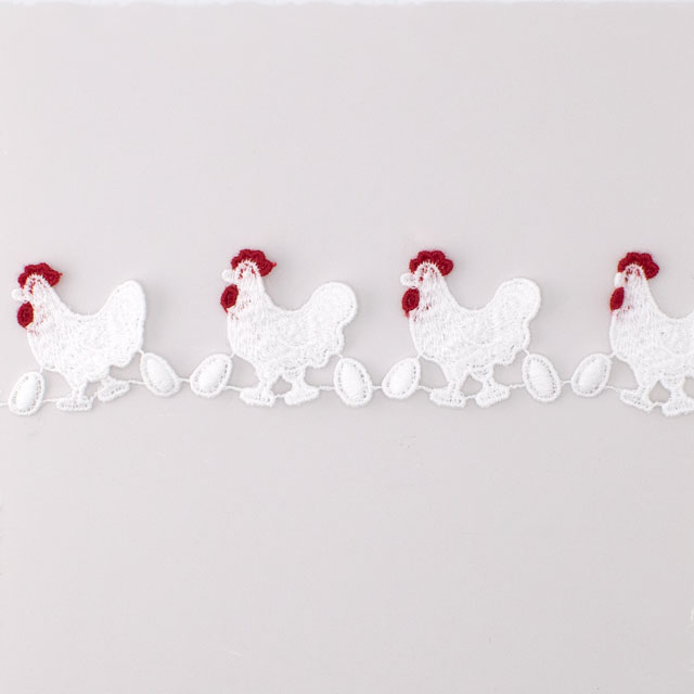 レースには珍しいニワトリのデザインレースです。