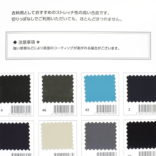 衣料用としておすすめのストレッチ性の高い合皮です。