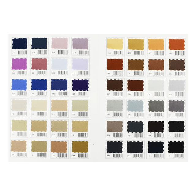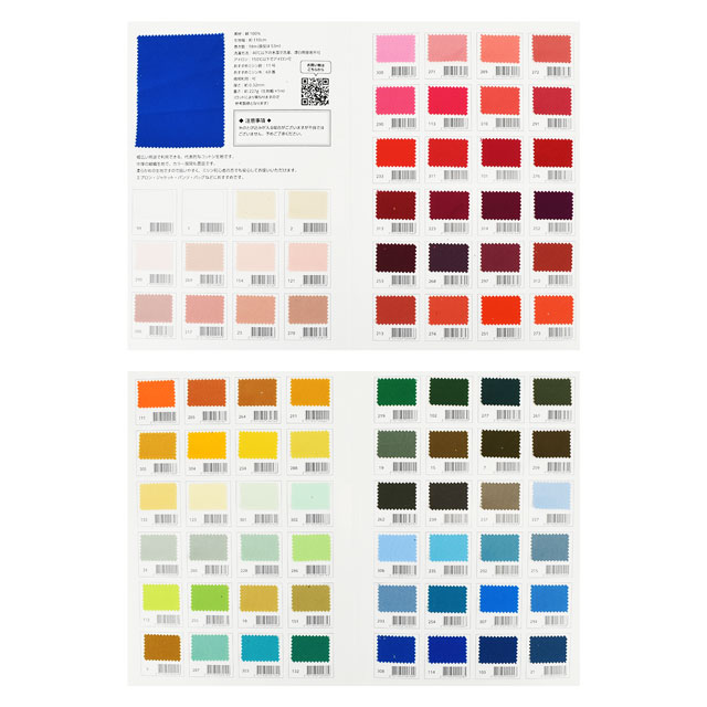 質感がわかるクオリティサンプルと、全色のカラーサンプルがついています。